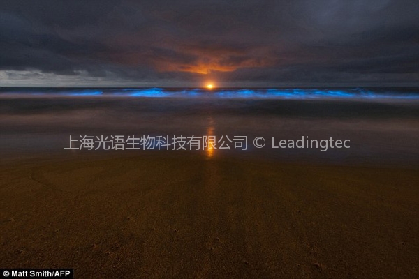 但在夜晚,這些赤潮又是另一番景象,發(fā)出藍色熒光
