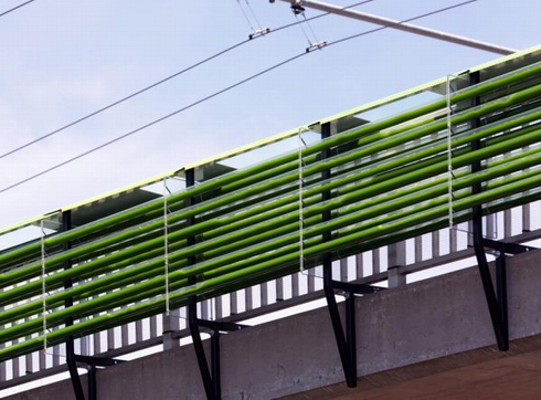 該生物反應(yīng)器包括含有藻類的管道、過濾器、水泵和太陽(yáng)能電池板。太陽(yáng)能電池板為水泵和過濾器提供動(dòng)力,水泵讓混合大量藻類的水不停地流經(jīng)透明管道,藻類從下方通過高速公路的汽車排出的尾氣中吸收二氧化碳,并通過光合作用將它們轉(zhuǎn)化為能量從而生長(zhǎng)。而藻類的生長(zhǎng)速度是非??斓?,其中一部分會(huì)被過濾出來,用來制造生物柴油、發(fā)電、制藥、化妝品甚至是食物。這種設(shè)計(jì)很可能成為城市環(huán)保、綠化的新見解。
