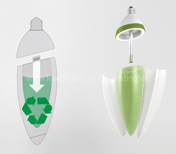 設(shè)計師Gyula Bodonyi設(shè)計了一款可謂真正意義上的”綠色”燈泡,利用燈泡內(nèi)的藻類來發(fā)電,點亮燈泡內(nèi)的小LED燈。這款設(shè)計也就被命名為”藻類燈泡”(AlgaeBulb)。