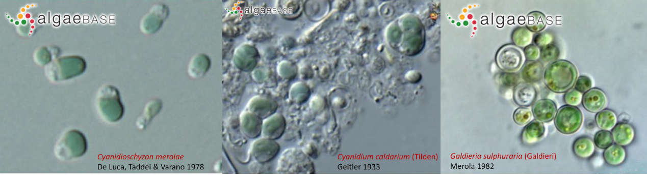 圖1. AlgaeBase中Cyanidioschyzon merolaeCyanidium caldariumGaldieria sulphuraria個(gè)種的光鏡照片