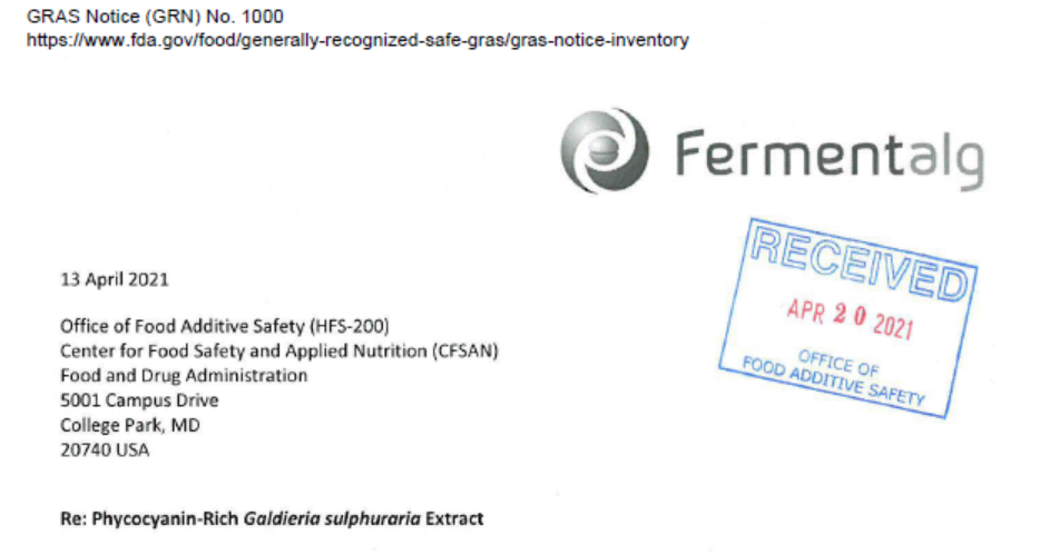 17. 美國FDA關(guān)于G. sulphuraria提取物的安全性備案