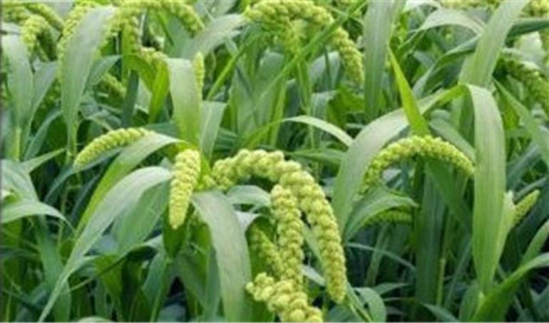圖七同一天播種的碳氫谷子(上)與化學(xué)谷子(下)長勢對比