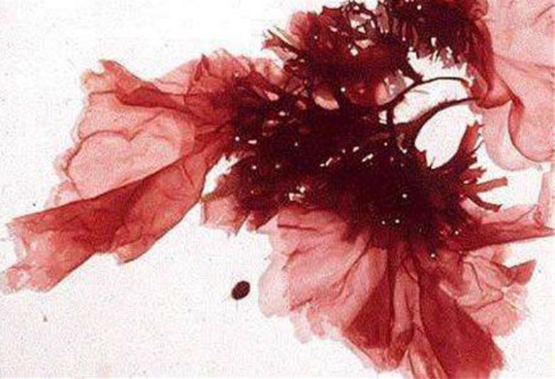 (二)內(nèi)部構(gòu)造:藻體含有葉綠素a、葉綠素d、葉黃素和胡蘿卜素,以及大量的藻紅蛋白和藻藍蛋白,常因各類色素的含量不同,使藻體出現(xiàn)不同的顏色,鮮紅或粉紅,紫,紫紅或暗紫紅色等。