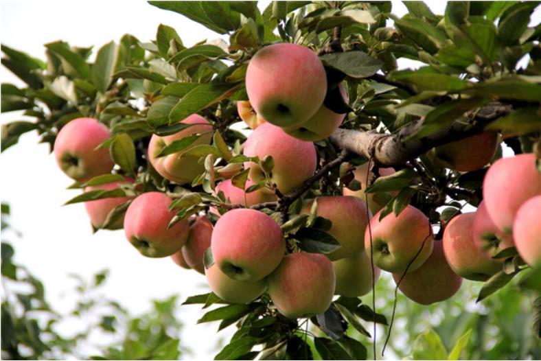 圖五同一個果園碳氫蘋果(上)與化學(xué)蘋果(下)掛果率和長勢對比