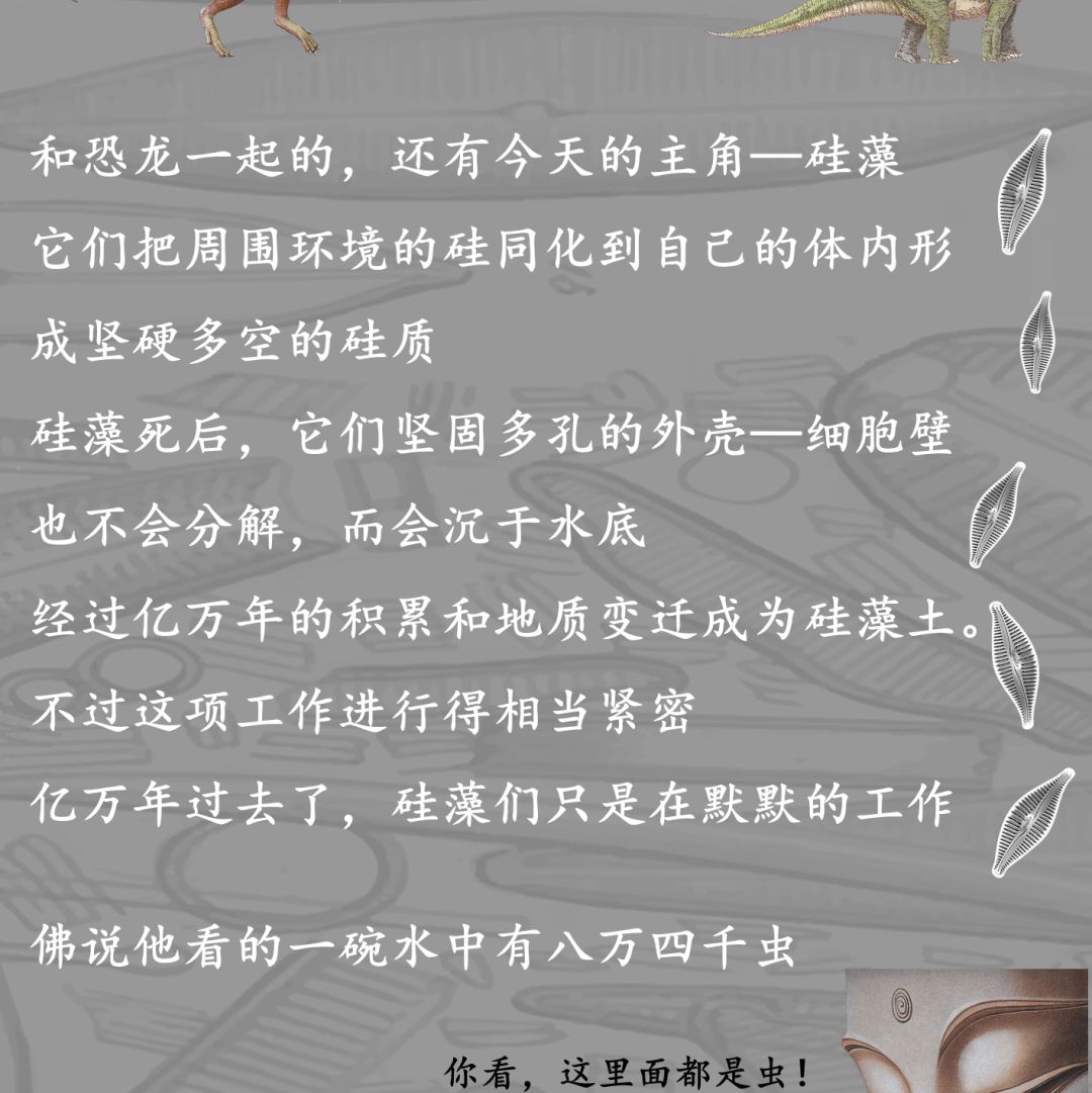 1836- 1837年彼得·卡斯滕在德國(guó)Haubelberg山的鉆井發(fā)現(xiàn)了一種呈白色或灰白色的礦物。這種礦物多孔性好,很容易搗成細(xì)而軟的粉末。沉睡了億萬年的硅藻再次出現(xiàn)在人類面前:硅藻死后,這些富含硅的硬殼通常被壓碎成細(xì)小、鋒利的碎片,在海洋中沉積,柔軟的、粉狀的、多孔的、富含硅的礦物。