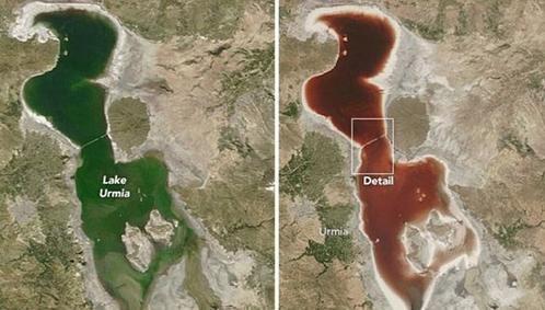 在海洋環(huán)境中,杜氏藻是呈綠色的,但是在強(qiáng)光和高鹽的環(huán)境下,杜氏藻會積累大量類胡蘿卜素使其轉(zhuǎn)變?yōu)榧t色;嗜鹽菌科生長在含高濃度鹽分的水中,它們會釋放一種叫菌視紫紅質(zhì)的紅色素,當(dāng)這種細(xì)菌數(shù)量足夠多時,就會把水染成紅色。據(jù)稱,近幾年,因為氣候干旱和農(nóng)業(yè)引水限制了淡水流入湖內(nèi),烏爾米湖變色可能會更加頻繁。