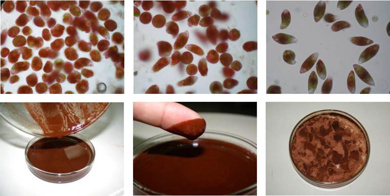 圖14. Zimba等研究所用的兩種眼蟲(左為血紅裸藻,E. Sanguinea;右為顆粒裸藻,E. Granulata,UTEX- LB2345),注意左圖的血紅裸藻并不顯示紅色。