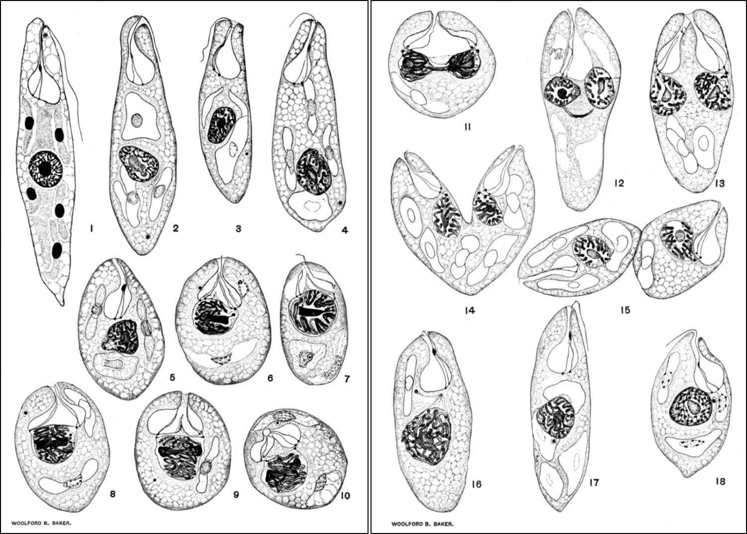 圖6. 眼蟲細(xì)胞分裂的過程(Woolford B. Baker,1926)