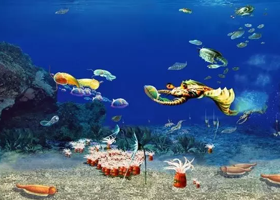 科學(xué)家發(fā)現(xiàn),那時大氣氧含量達(dá)到了足以使生物機(jī)能很好發(fā)育的水平。因此,生物進(jìn)化出了骨骼,眼睛、脊索、口器和觸手等,而且以身體兩側(cè)對稱為主。它們開始向海洋不同的水層擴(kuò)散,建立起了現(xiàn)代海洋生態(tài)系統(tǒng)的雛形。由于大型捕食動物奇蝦的出現(xiàn),復(fù)雜的食物鏈也開始建立了起來,從而引發(fā)了之后五億年來高潮迭起的生命演化。