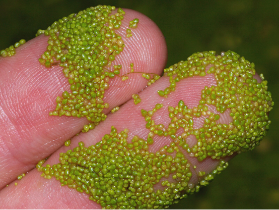 果實更稀奇——和花一樣少見,是顆1-1.5毫米、帶棱的小種子,沒毛。繁殖全靠“休眠芽”:圓滾滾/腎形的無根小芽,橄欖褐色。秋天芽兒落水底“冬眠”,春天回暖又浮上來,生根長葉,循環(huán)往復~(圖片來源 https://www.naturespot.org/species/greater-duckweed, Spirodela polyrrhiza (Greater Duckweed): Minnesota Wildflowers)