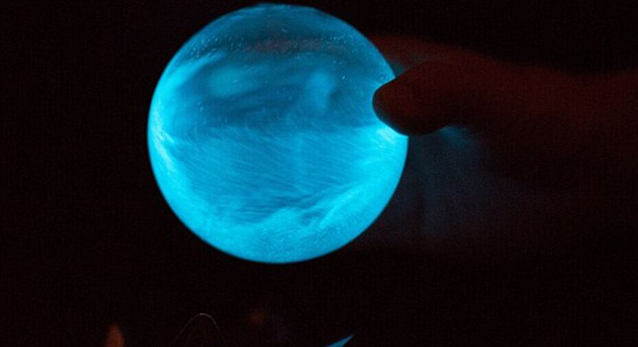 ?加利福尼亞的BioPop公司設(shè)計(jì)了一款裝飾性球體,只要輕輕搖晃,便會(huì)發(fā)出藍(lán)色的光輝。