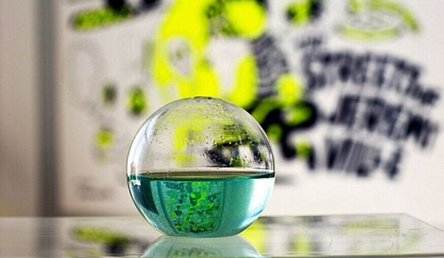 該球體利用了生物體發(fā)光的特性,球體內(nèi)裝有許多微觀浮游生物,能夠在天黑之后營造出一個(gè)鮮活生動(dòng)的世界。