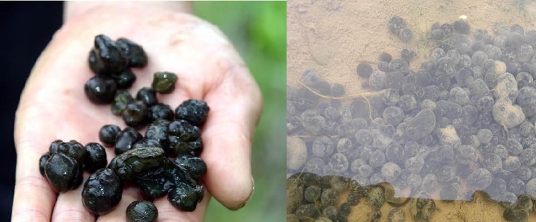 圖7. 不同大小不同顏色的(近)球狀的念珠藻(左下角最大的那個(gè)重2.6公斤,直徑22cm,估計(jì)生長(zhǎng)了大約9-14年,老俞看到此圖一下子覺(jué)得自己沒(méi)見(jiàn)過(guò)世面,應(yīng)該再回去讀一遍博士。圖片收集感謝神梯,度娘還是差了點(diǎn)?。?/span>