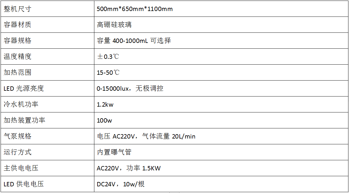 - 內(nèi)置 LED 光源,光源可控:光照強(qiáng)度可調(diào),光照時(shí)間可調(diào),可以更換光源來(lái)實(shí)現(xiàn)不同波長(zhǎng)的光譜; l