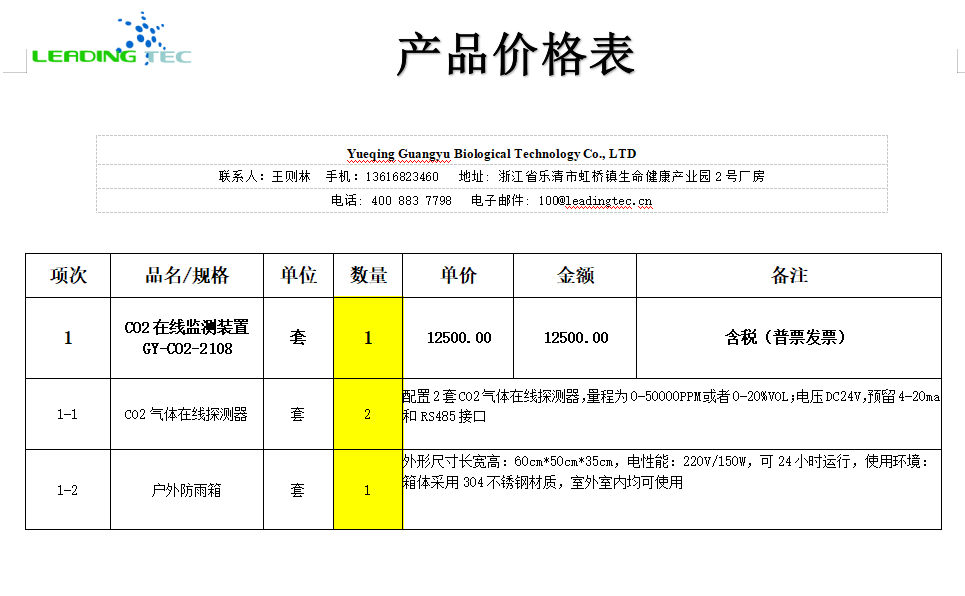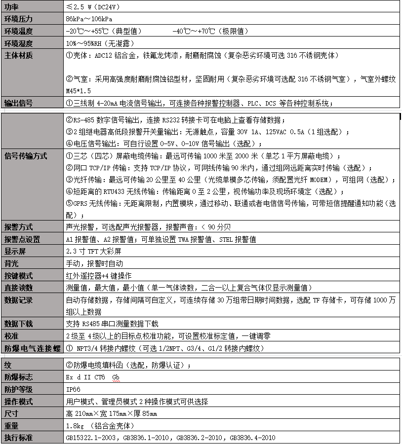CO2氣體監(jiān)測裝置技術參數(shù)