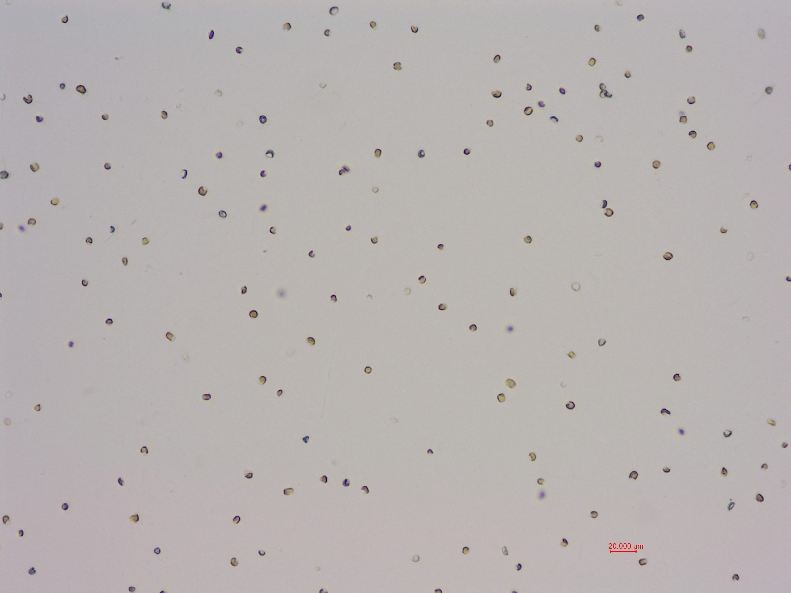 牟氏角毛藻細胞小型,細胞壁薄。大多數(shù)單個細胞,也有2-3個細胞相連成群體。殼面橢圓形至圓形,中央略凸起或少數(shù)平坦。殼環(huán)面成長方形至四角形,環(huán)面觀一般細胞大小通常寬3.45-4.6微米,長4.6-9.2微米,殼環(huán)帶不明顯。角毛細而長,末端尖,自細胞四角生出,幾乎與縱軸平行,一般長20.7-34.5微米。殼面觀,兩端的角毛以細胞體為中心略呈“S”形。色素體一個,呈片狀,黃褐色。在培養(yǎng)過程中,細胞常常變形。變形的細胞拉長或彎曲,或膨大為圓、橢圓及其他不同于正常形態(tài)的形狀,角毛縮短或一個殼面的角毛完全消失。變形后的藻體都比正常的大。正常情況下,牟氏角毛藻培養(yǎng)液呈金黃色,無沉淀,一級培養(yǎng)密度可達33 萬個/ ml ,適鹽26~35 ,適溫5~30℃,生長率隨水溫升高而提高,超過30 ℃生長率開始下降,最適溫度30 ℃。適宜PH范圍為6.4-9.5,最適PH為8.0-8.9,一般為無性的二分裂繁殖。環(huán)境不良的時候可形成休眠孢子,一個母細胞形成一個休眠孢子,也能形成復(fù)大孢子。