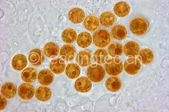 蟲黃藻?(Zooxanthella;Dinophycae Symbiodinium)是海藻的一種,是多種海洋動物和原生動物內(nèi)的一種一種金黃色細(xì)胞間共生菌,特別是珊瑚綱生物,如石珊瑚和熱帶海葵等常見。據(jù)估計,每mm3的珊瑚組織內(nèi)有3萬個蟲黃藻,它們與珊瑚蟲互惠共存。蟲黃藻大多數(shù)都是自養(yǎng)生物,并會為宿主提供易位式還原碳化物,如:葡萄糖、甘油、氨基酸等光合作用的產(chǎn)物。蟲黃藻可以為珊瑚礁提供高達(dá)90%的能源需求。作為回報,珊瑚為蟲黃藻提供保護(hù)、居所、營養(yǎng)(主要是含有氮和磷的廢料)和恒定供應(yīng)光合作用所需的二氧化碳。 透過對養(yǎng)分、光線及對過剩細(xì)胞的驅(qū)逐,珊瑚可以控制蟲黃藻的數(shù)量,以免其過度繁殖。 蟲黃藻亦有在其他原生動物(例如:foraminiferans和放射蟲)和一些無脊椎動物里居住。
