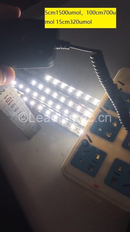 光照強度:1500μmol/m2/s (5cm距離測試),700μmol/m2/s (10cm距離),320μmol/m2/s (15cm距離)