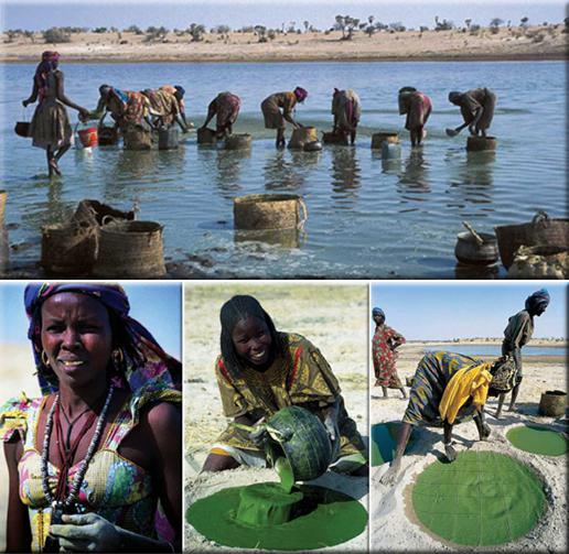 人類利用微藻的歷史可追溯到千年以前,我國漢朝的“蘇武牧羊”里便有記載蘇武“渴飲雪,饑吞氈”,此中的“氈”便指的是一種藍(lán)藻——發(fā)狀念珠藻(Nostoc flagelliforme),俗名發(fā)菜,在我國宋朝時期甚至是一種出口產(chǎn)品;我國湖北省鶴峰縣走馬坪鎮(zhèn)的特產(chǎn)——葛仙米,亦是一種藍(lán)藻,稱為擬球狀念珠藻(Nostoc sphaeroids),因東晉時期的道教名家葛洪而得名;西班牙殖民者十五世紀(jì)末到達(dá)美洲時,便發(fā)現(xiàn)阿茲特克人(Aztec)在食用一種從湖里打撈的鏈狀藍(lán)藻,即螺旋藻(Spirulina);而法國殖民者在上世紀(jì)40年代到達(dá)非洲乍得湖時,也發(fā)現(xiàn)當(dāng)?shù)赝林谑秤寐菪濉?/span>